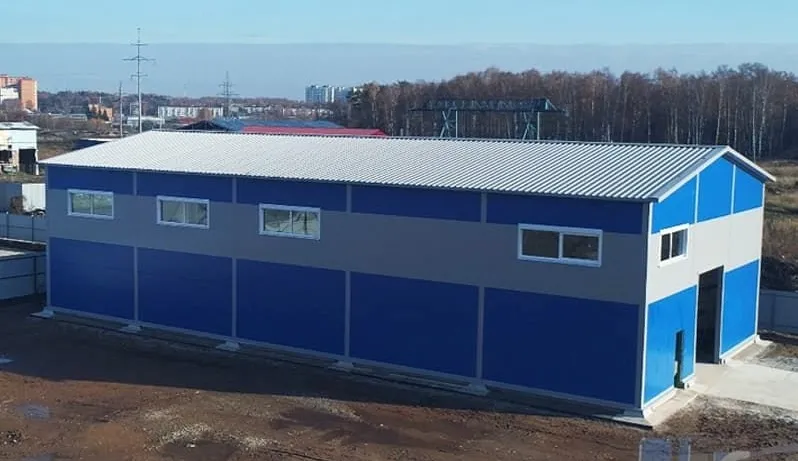 - ограждающие конструкции: сэндвич‑панели (наружный слой — оцинкованная сталь с полимерным покрытием, утеплитель — минеральная вата, внутренний слой — профилированный лист);